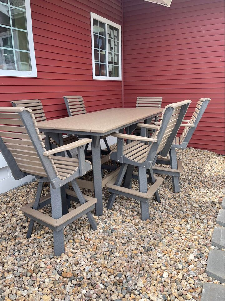 Creekside Poly Lawn Furniture makes quality crafted outdoor furniture. Amish built in Indiana USA. Made with Tangent PolyTuf HDPE plastic lumber which is custom-extruded from purified blends of recycled plastics. Additional proprietary additives are compounded into each product. UV-inhibited pigments, anti-oxidant processing aids, foaming agents and other compounds are introduced to enhance performance.Read More