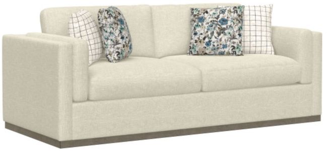 Cecily draws quiet attention with its balanced blend of structural and tailored shapes. Starting with a solid wood floating base, soft, cream-colored fabric covers the uncluttered lines and clean silhouette of the sofa, loveseat, and chair. Swivel chairs in floral and windowpane patterns are trimmed on all edges with shapely wood for stylish accessories. Completing the ensemble is a coordinating ottoman with hidden storage and castors to glide with ease. The Cecily collection will be the belle of your room with its transitional appeal.