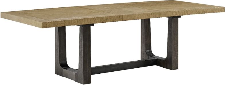 The Sutton Place dining collection embodies relaxed contemporary style with a focus on the natural beauty of oak. Crafted with tight-grain, book-matched oak veneers framed by a contrasting straight grain border, the tabletops showcase a warm caramel tone atop cocoa trestle bases.Read More