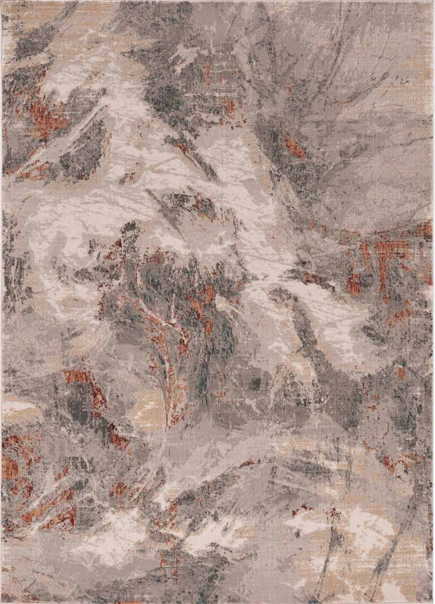 KAS Aura Brick/Grey Skyler 7'10" x 10'10" Area Rug is machine-woven of polypropylene and shrink polyester with no backing. Made in Turkey. Vacuum on floor setting only. Spot clean stains with mild soap and water.Read More