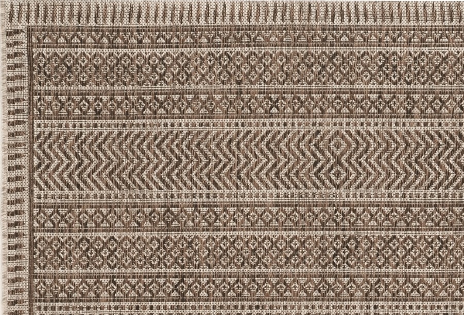 Liven up your home inside or out! Provo is a collection of textured indoor/outdoor rugs featuring a variety of everyday and trendy patterns with pops of color. Provo was made to withstand any weather so get ready to style your home in any style! Machine-woven in Turkey with a low ¼” pile height. Provo 5762 Mocha Izetca 7'10" Round. Machine-Woven of UV-Treated Polypropylene with No Backing. Made in Turkey. Vacuum with floor attachment if needed. Blot spills immediately. Spot clean stains with mild detergent and white cloth. If used outdoors, rug can be hosed off and dried on a flat surface.