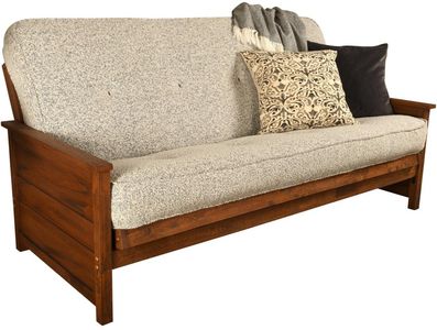 The Kodiak Furniture Lexington Futon in Canton Gray/Weathered Brown offers functionality with a solid hardwood frame and a full-size mattress. It supports three positions for sitting, lounging, and sleeping, providing versatility for any space.Read More