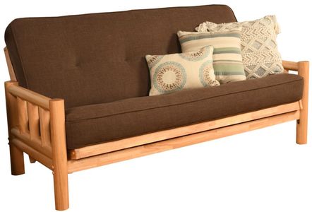 The timeless look of the round, log cabin style, solid hardwood arms of this full-size futon frame is a perfect fit in your mountain retreat, family room, or the man cave in your traditional or rustic style home decor. With its beautiful natural wood grain finish, this futon is sure to be a lasting treasure.Read More