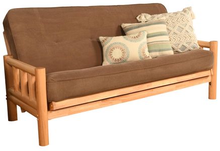 The timeless look of the round, log cabin style, solid hardwood arms of this full-size futon frame is a perfect fit in your mountain retreat, family room, or the man cave in your traditional or rustic style home decor. With its beautiful natural wood grain finish, this futon is sure to be a lasting treasure.Read More