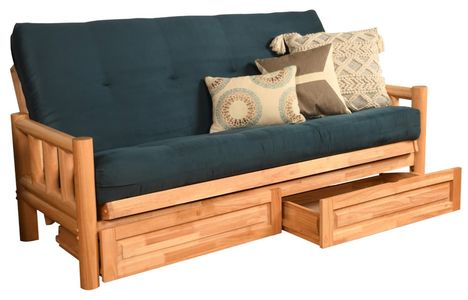 The timeless look of the round, log cabin style, solid hardwood arms of this full-size futon frame with storage drawers is a perfect fit in your mountain retreat, family room, or the man cave in your home decor.Read More