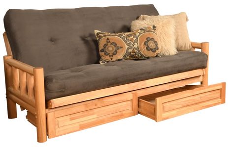 The timeless look of the round, log cabin style, solid hardwood arms of this full-size futon frame with storage drawers is a perfect fit in your mountain retreat, family room, or the man cave in your home decor.Read More