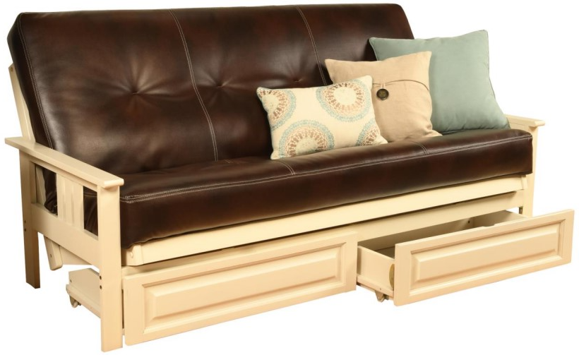 The mission style design on the arms of this solid wood futon frame cradle your mattress for sleeping comfort - pillows and sheets stay put when using it as a bed. This easy-to-adjust frame comes in an array of colors and the comfort of sofa height seating.Read More