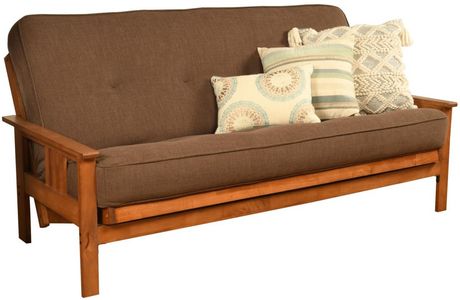 The mission style design on the arms of this solid wood futon frame cradle your mattress for sleeping comfort -- pillows and sheets stay put when using it as a bed. This easy-to-adjust frame comes in an array of colors and the comfort of sofa height seating.Read More