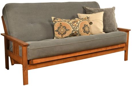 The mission style design on the arms of this solid wood futon frame cradle your mattress for sleeping comfort -- pillows and sheets stay put when using it as a bed. This easy-to-adjust frame comes in an array of colors and the comfort of sofa height seating.Read More