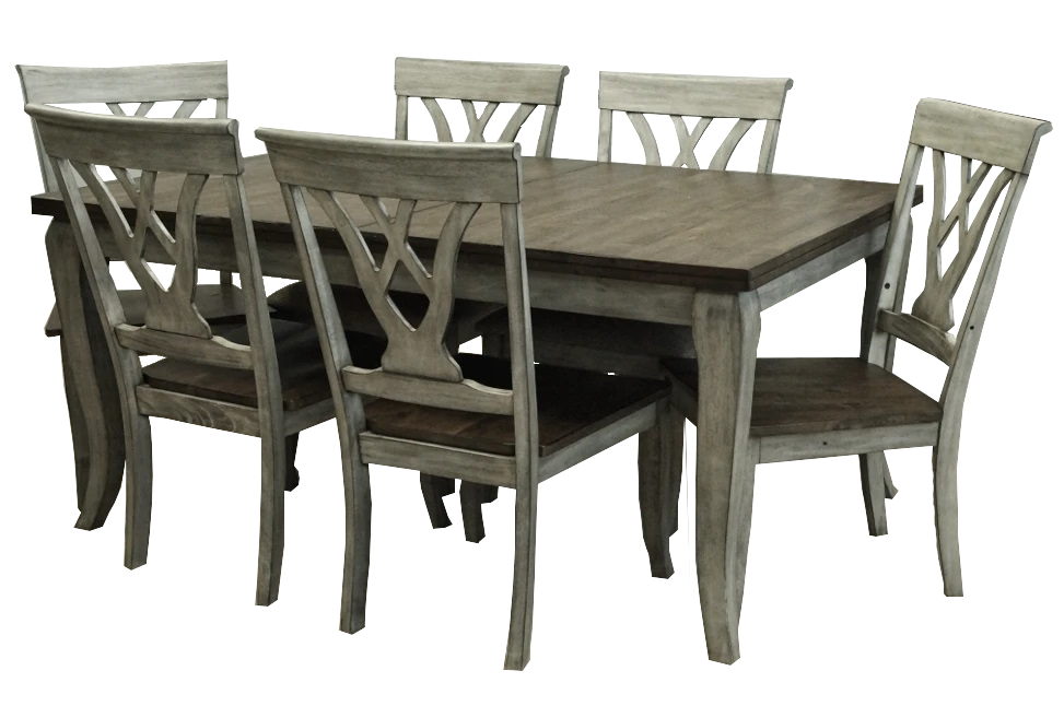 Includes Solid Wood Table with Self-Storing Butterfly Leaf and 6 solid wood chairs. Table Dimensions: 40in. W x 60/78in. L x 30in. H Chair Dimensions: 19in. W x 24in. D x 40in. H