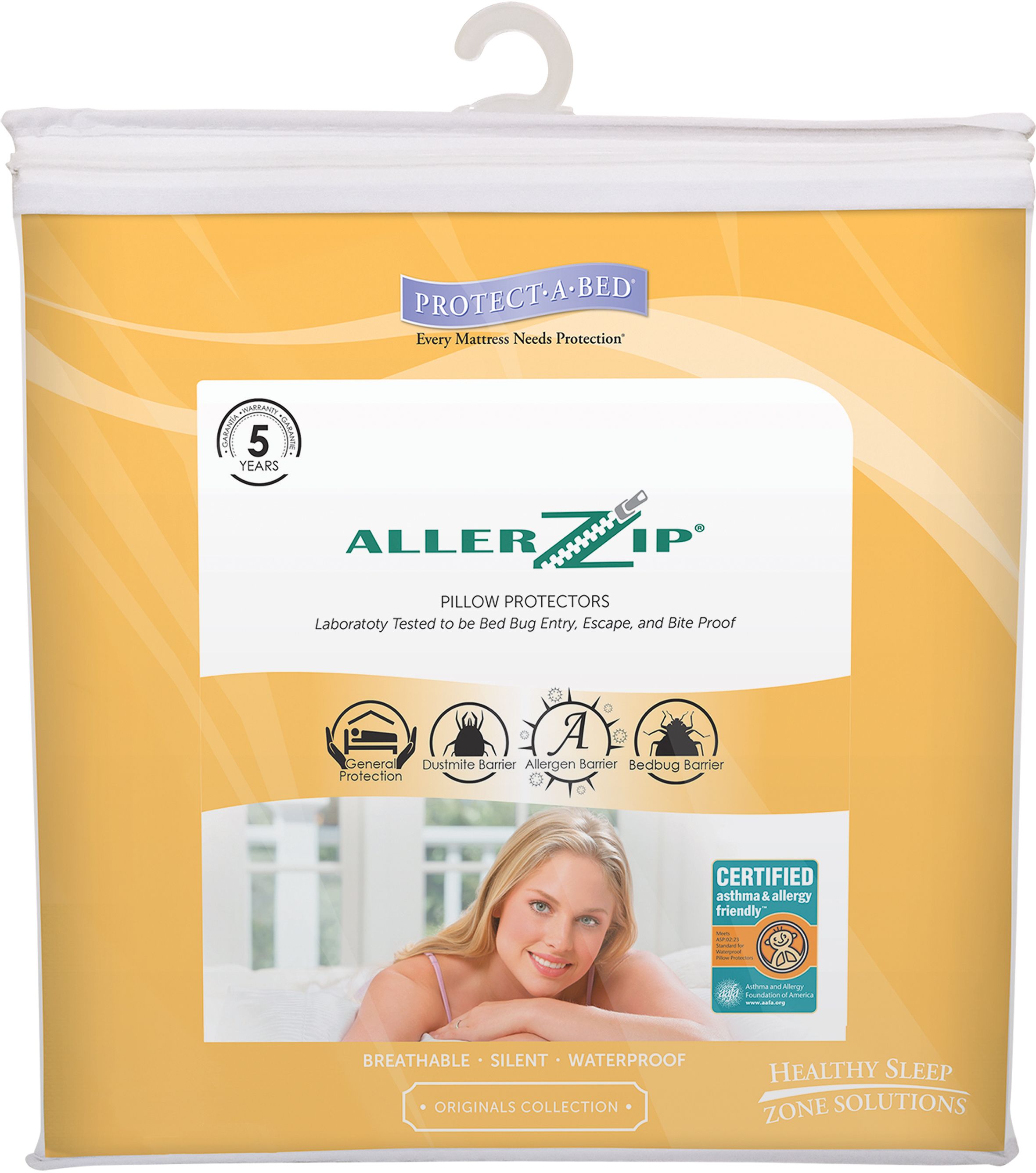 The AllerZip Pillow Protector keeps your pillow clean, allergy-free and bed bug-proof for a healthy night’s rest. Miracle Membrane barrier promotes a healthy sleep environment by protecting you from dust mites and other allergens that may lurk in your pillow, including mold, mildew, pet dander and pollen.Read More