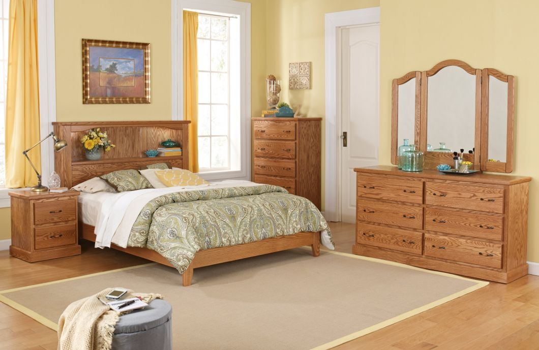 Wolfcraft Vesper bedroom collection. This includes the Queen Bookcase headboard with low profile footboard kit, 2 drawer nightstand, 6 drawer dresser and 5 drawer chest. This is available in Oak or Maple wood and has 12 different stain colors. Mirror not included in price, if you're interested in the mirror it is an additional $649Read More